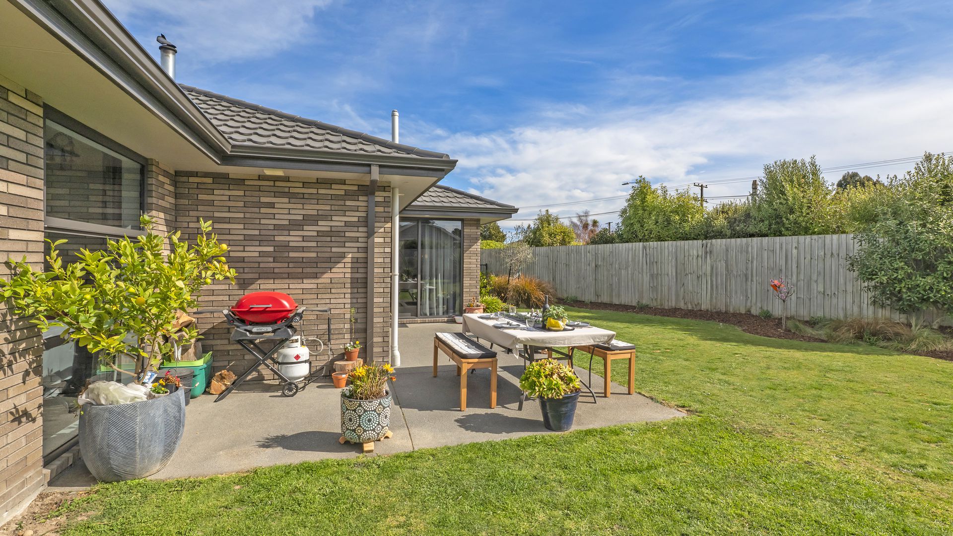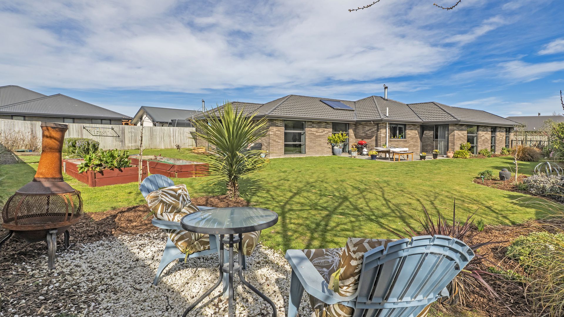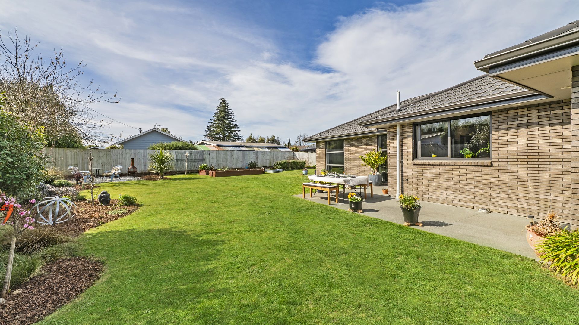 Outdoor living is effortless, with seamless flow to a sunny, north-facing patio - perfect for barbecues and summer entertaining. The fully fenced grounds are beautifully landscaped with established plantings, raised vegetable beds, and plenty of lawn for children and pets to enjoy.