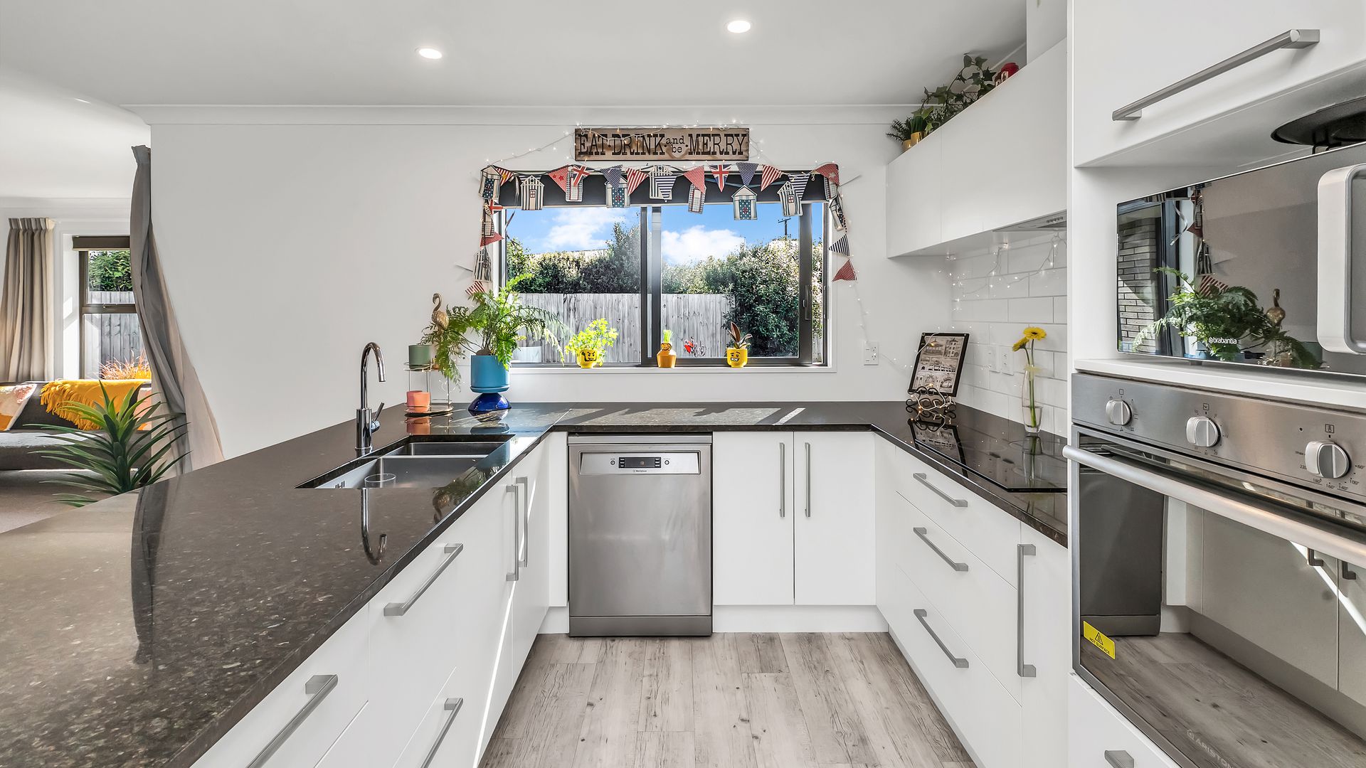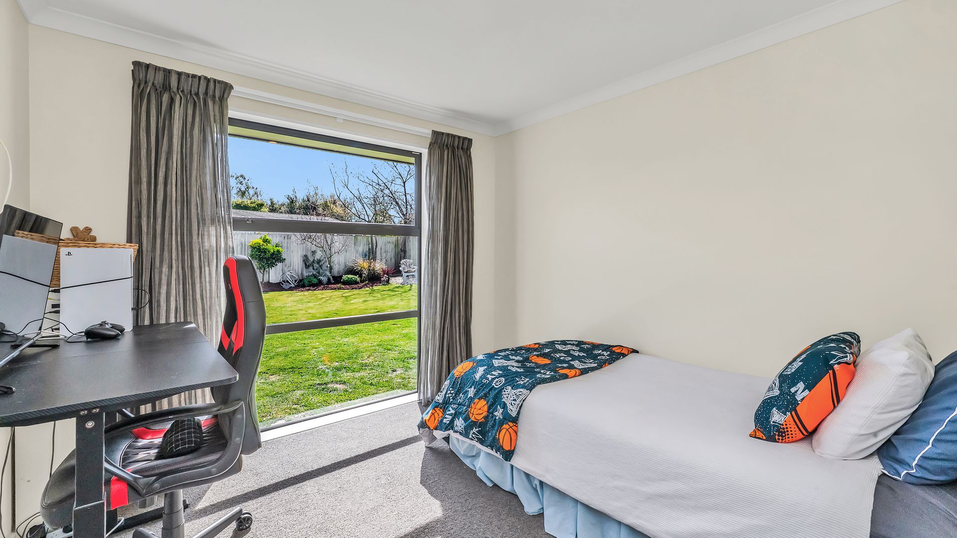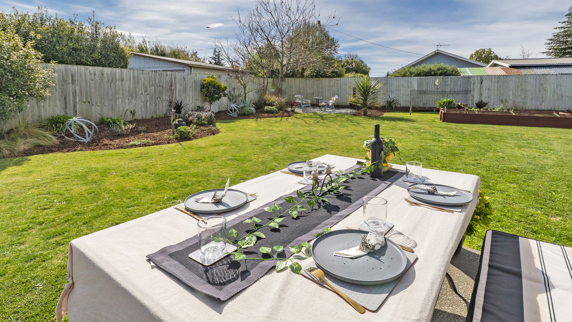Outdoor living is effortless, with seamless flow to a sunny, north-facing patio - perfect for barbecues and summer entertaining. The fully fenced grounds are beautifully landscaped with established plantings, raised vegetable beds, and plenty of lawn for children and pets to enjoy.
