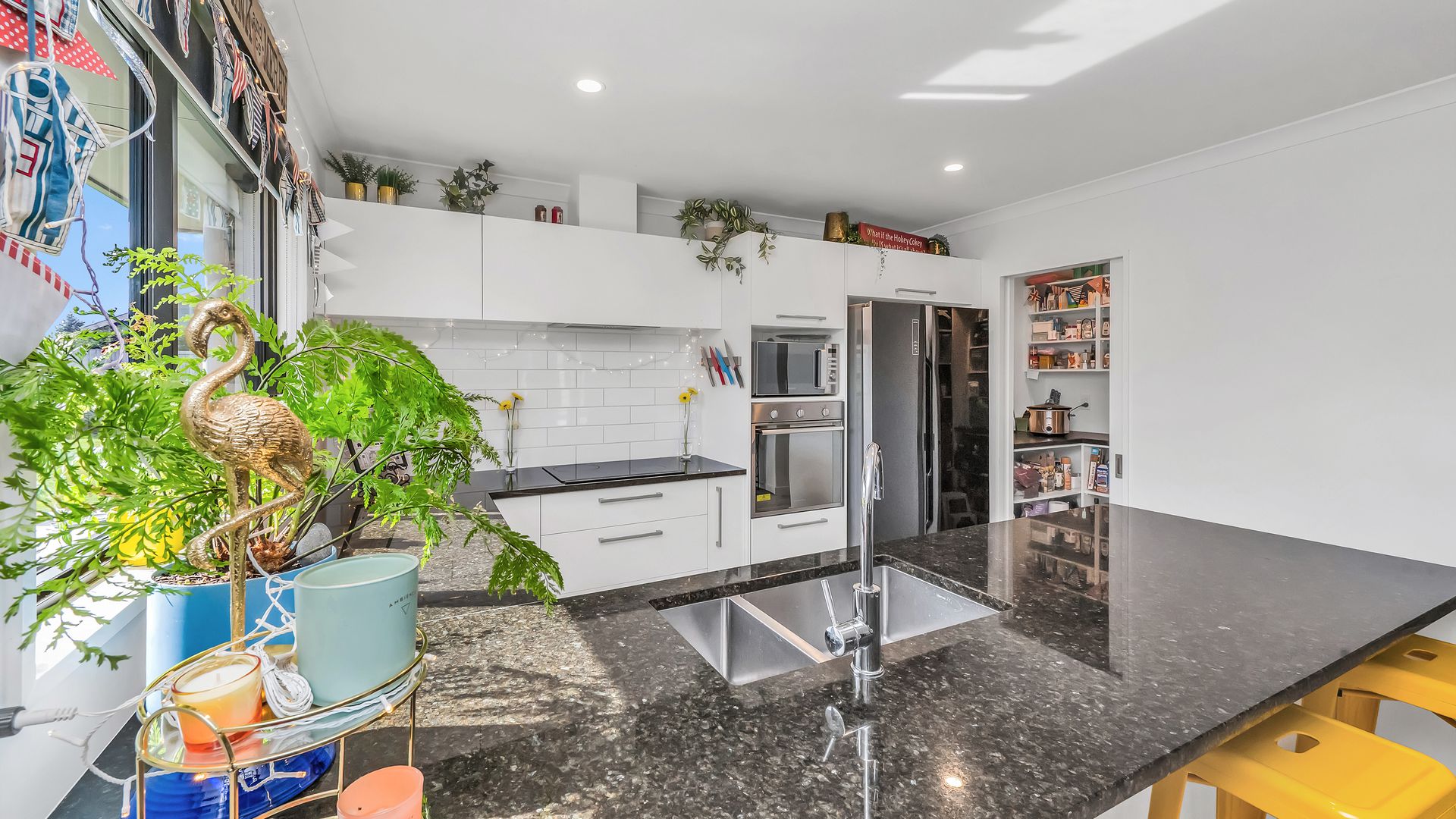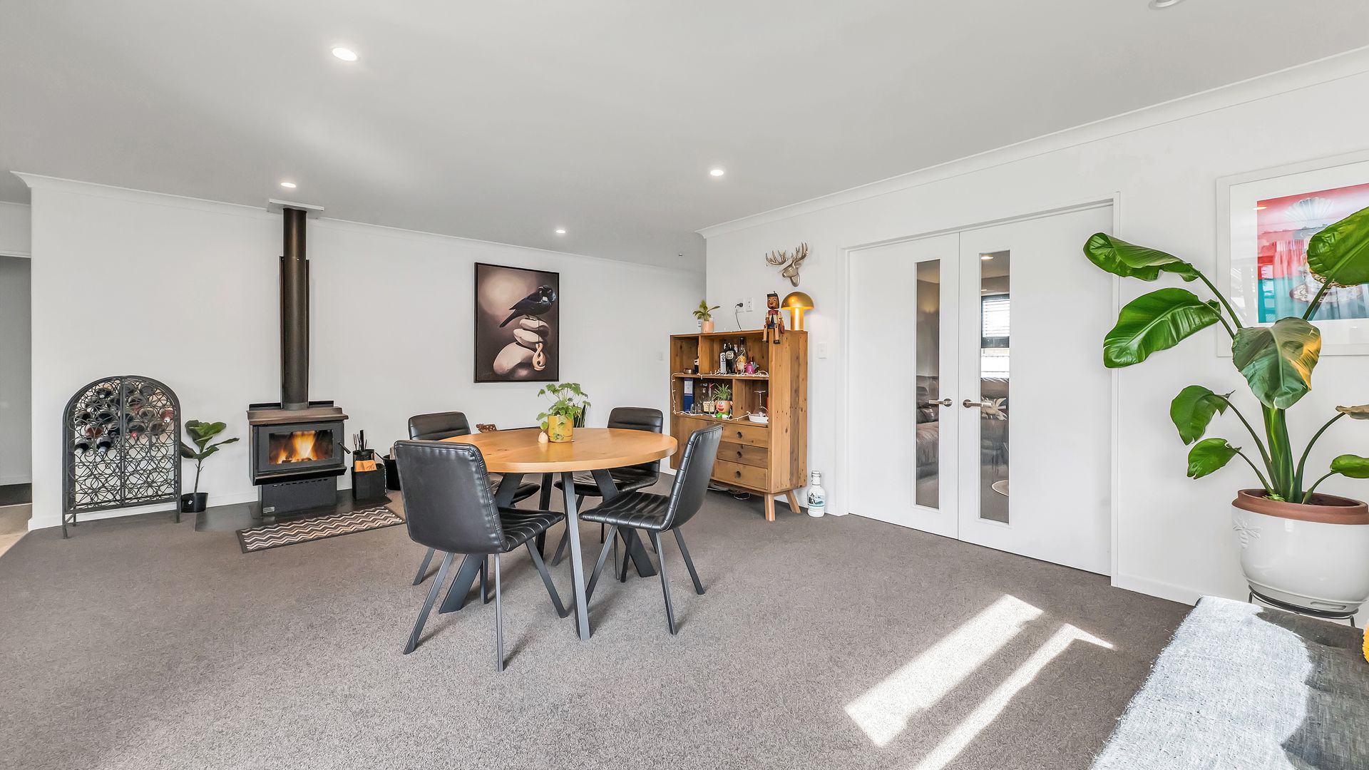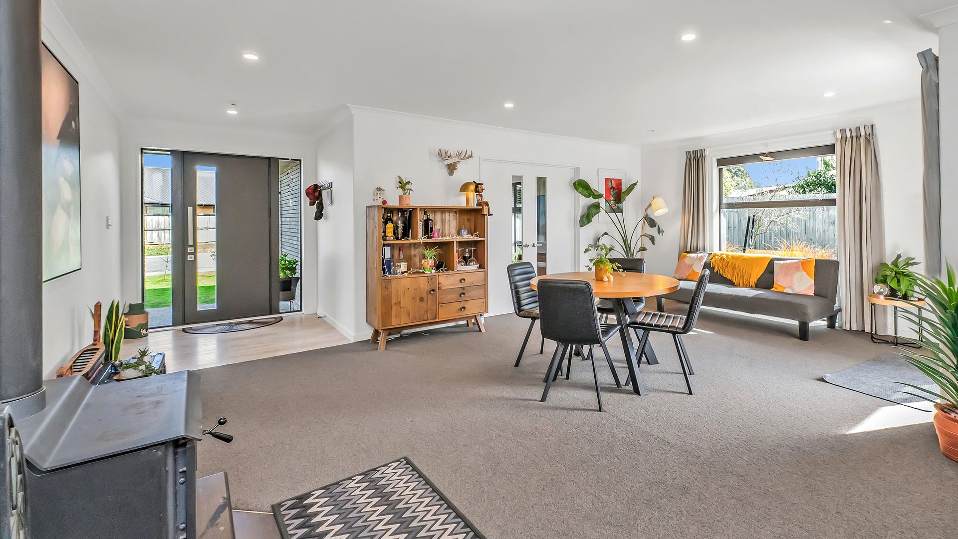At its heart, the open-plan kitchen, dining, and living area creates a welcoming hub. The kitchen impresses with sleek finishes, excellent bench space, and a walk-in pantry, while a second lounge offers that much-needed extra living space for families to spread out and relax. A centrally positioned log burner and a heat pump provide year-round warmth and comfort.